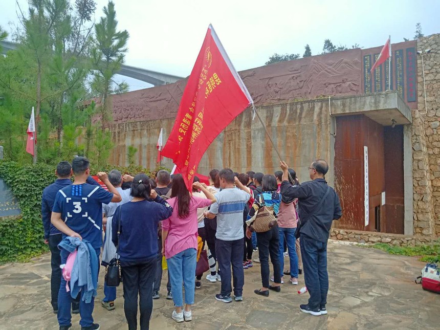 上午,一行人前往柯渡长征红色文化教育学院教学点,富民小松原战斗纪念馆进行实地教学,学习红军先烈不怕困难、不怕牺牲的战斗精神。同时,在小松原战斗纪念馆前面对神圣而敬重的党旗进行重温入党誓词宣言。